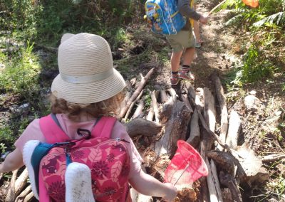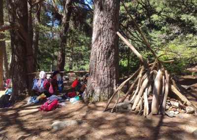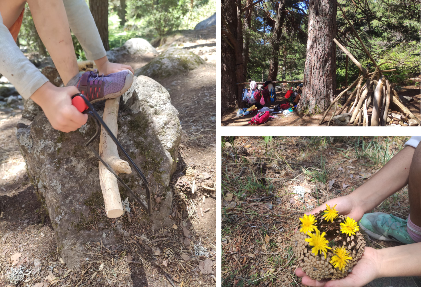 Cada día es una oportunidad para explorar y aprender de nuestro entorno. Nos refrescamos cerca del arroyo, construimos cabañas, conocemos las herramientas de supervivencia o creamos con los elementos de la naturaleza que nos rodea.