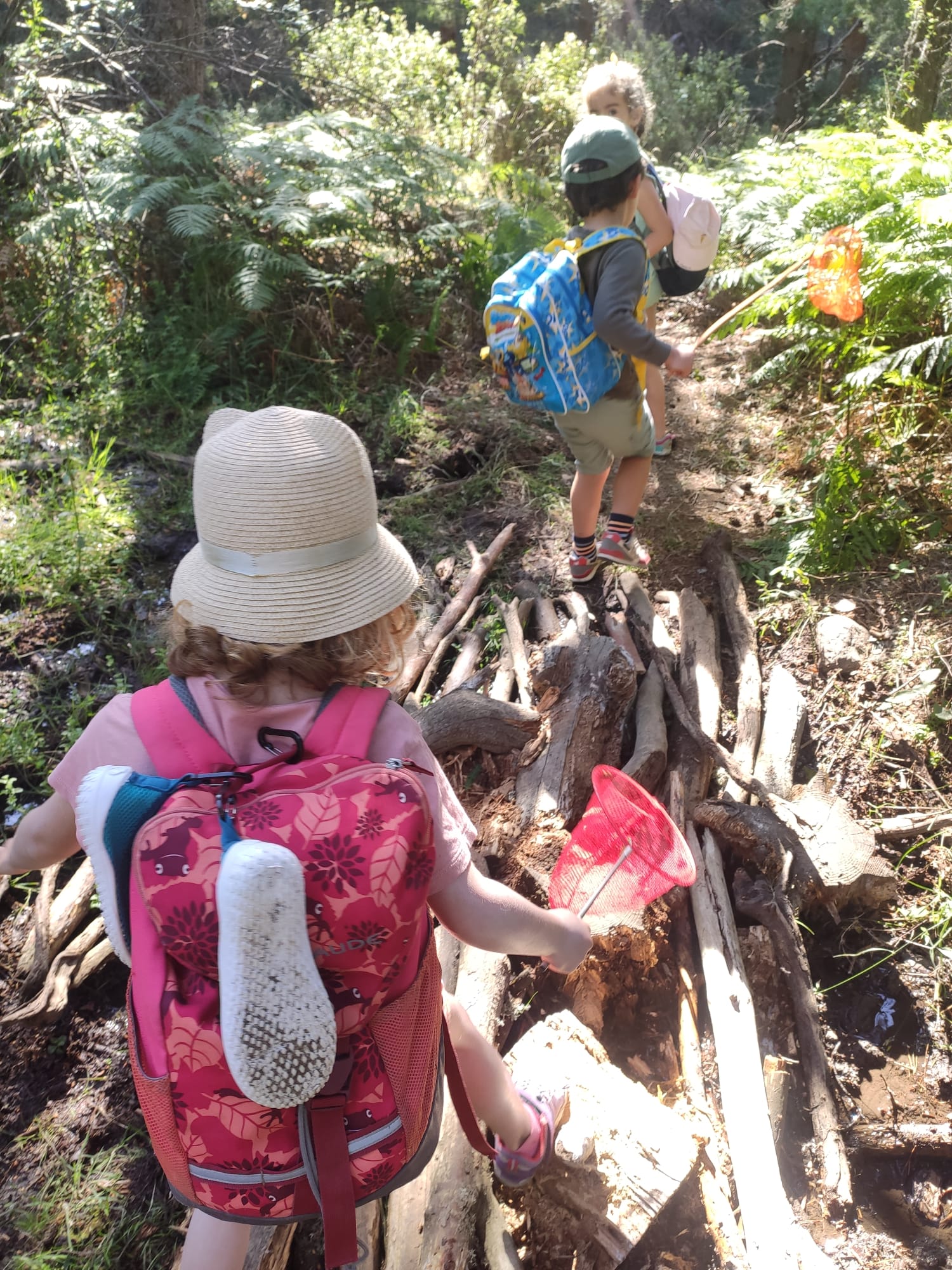 Un espacio íntimo, entre árboles y arroyos , donde los niños y niñas juegan, exploran y crean desde la libertad y la seguridad de quienes acompañan.