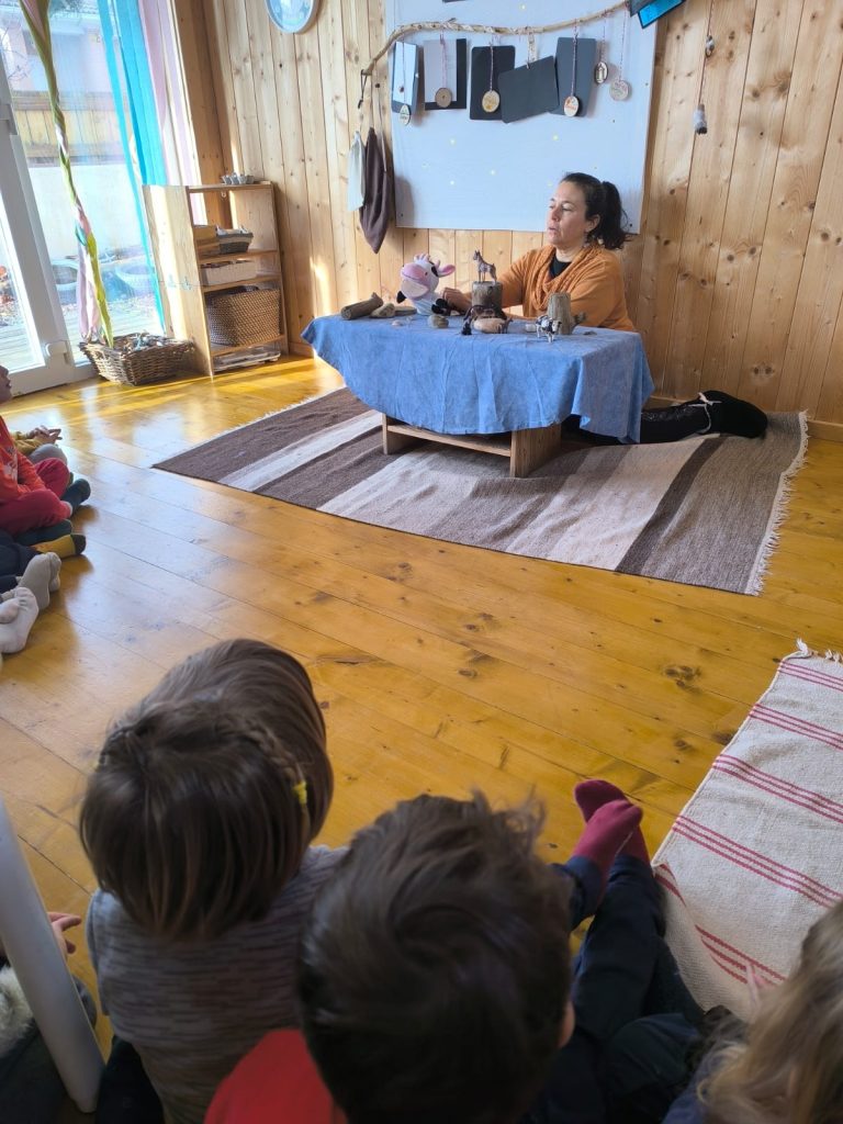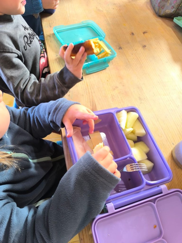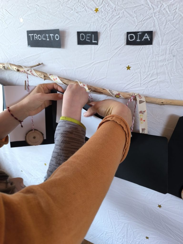 Nuestra mañana se vive entre el Aula de la naturaleza y el contacto continuo con el monte de Moralzarzal. Transitar entre ambos espacios permite alternar movimiento y recogimiento, juego y descanso, creación libre y propuestas más cuidadas, dando forma a una rutina equilibrada, con ritmo y en armonía.