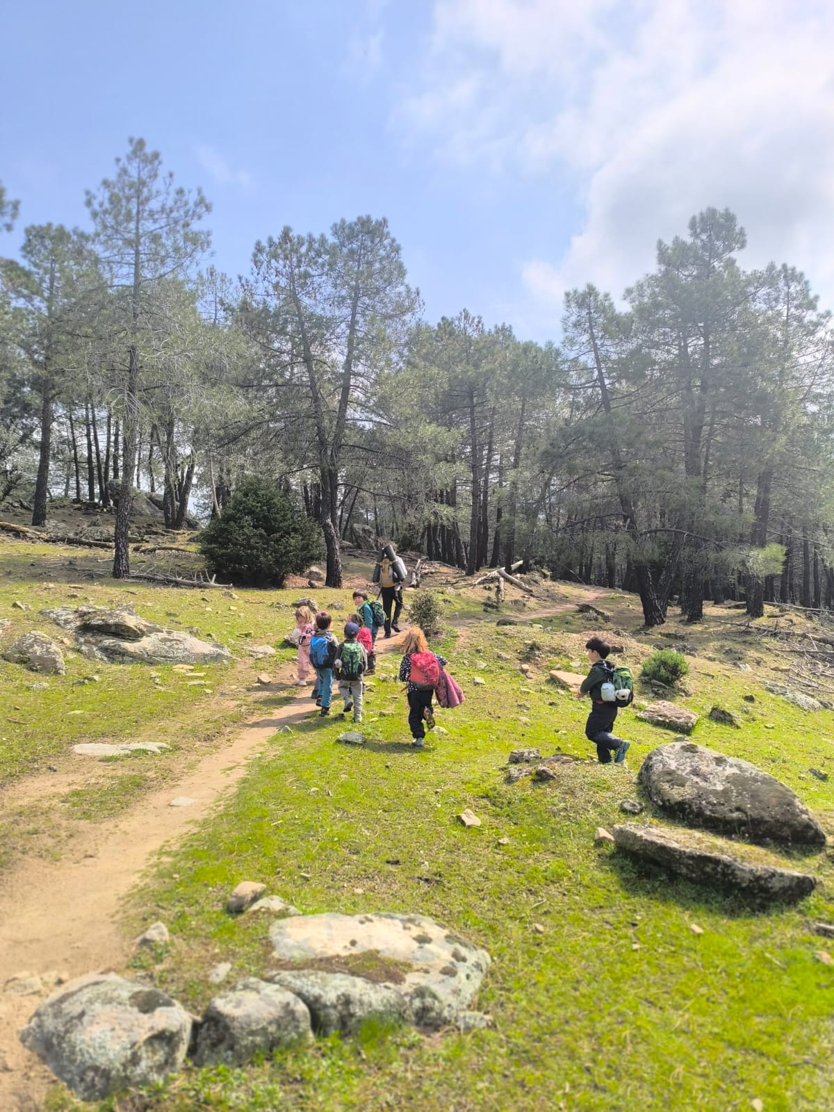 En el monte las niñas y niños se mueven con más calma, leen mejor el entorno y asumen pequeños riesgos de forma progresiva. Con el paso del día a día van ajustando sus capacidades y ganando confianza. El hecho de ser un grupo pequeño y el acompañamiento cercano, hacen que la experiencia en el monte se viva con calma y seguridad.